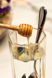 Honey will naturally crystallize with age; this occurs when the molecules harden and the honey thickens as a result. This process is completely normal and does not mean that the honey has gone off or spoilt as some people may think. The easiest way to reconstitute the honey back to its original pouring consistency is to place the jar of honey in some warm water. Be careful, because much hotter than about 40C and you run the risk of killing all the good enzymes, vitamins and minerals.
